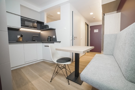 2-persoonskamer balkon (2-2 personen): min. 27 m2 en voorzien van 2-persoonsbed, tv, WiFi en kluisje. Keuken met kookplaten, koelkast, vaatwasser, waterkoker en magnetron. Badkamer met douche, föhn en toilet. Balkon.
