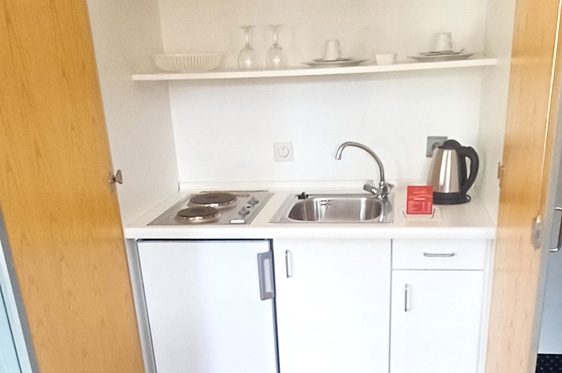 1-persoonskamer balkon (1-1 persoon): ca. 20 m2 en voorzien van 2-persoonsbed, tv en WiFi. Kitchenette met 2 kookplaten, koelkast en waterkoker. Badkamer met douche en toilet. Balkon.
