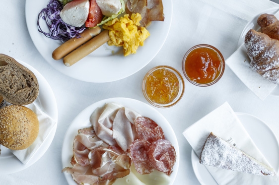 Je verblijft op basis van logies en ontbijt: in de ochtend een ontbijtbuffet.