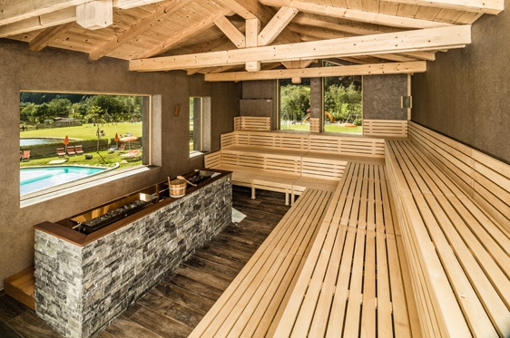 Uitgebreide wellness op 10.000 m2 met stoombad, sauna, Finse sauna, biosauna, panoramasauna, sanarium, infraroodcabine, rustruimte en een eigen aparte kinderspa met kindersauna en zwembad.