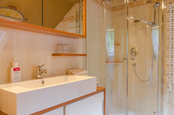 3-persoonskamer (2-3 personen): min. 23 m2 en voorzien van 2-persoonsbed, extra bed en WiFi. Badkamer met douche, föhn en toilet.