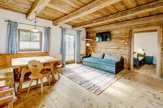 Familiekamer type X (2-4 personen): type 30, in het Almdorf op de begane grond, ca. 55 m2 en voorzien van 2-persoonssofabed, tv, WiFi en kluisje. Aparte slaapkamer met 2-persoonsbed en optisch gescheiden stapelbed (door een kast). Badkamer met douche, föhn en toilet. Terras.
