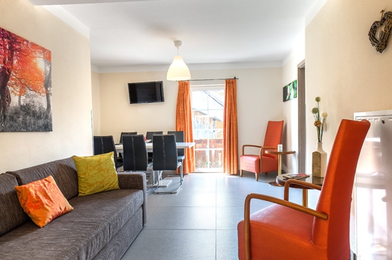 3-kamerappartement (3-6 personen): min. 80 m2 en voorzien van woonkamer met 2-persoonssofabed, zithoek, tv en WiFi. Keuken met fornuis, koelkast, oven, vaatwasser, koffiezetapparaat en waterkoker. 2x slaapkamer met 2-persoonsbed. Badkamer met douche, föhn en toilet. Apart toilet. Balkon of terras.