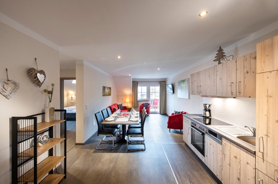 2-kamerappartement (2-4 personen): min. 65 m2 en voorzien van woonkamer met 2-persoonssofabed, zithoek, tv en WiFi. Keuken met fornuis, koelkast, oven, vaatwasser, koffiezetapparaat en waterkoker. Slaapkamer met 2-persoonsbed. Badkamer met douche en föhn. Apart toilet. Balkon of frans balkon.