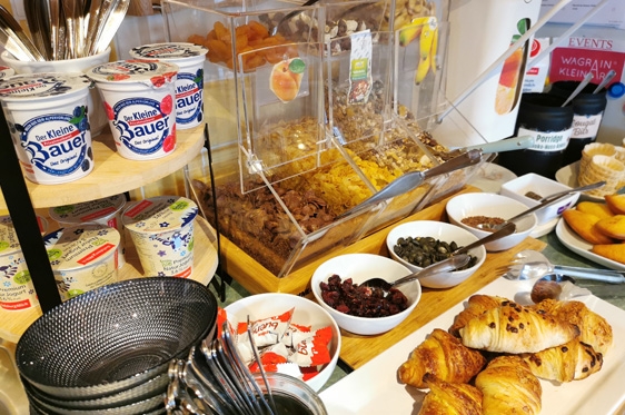 Je verblijft op basis van logies en ontbijt: in de ochtend een ontbijtbuffet.