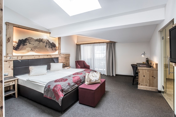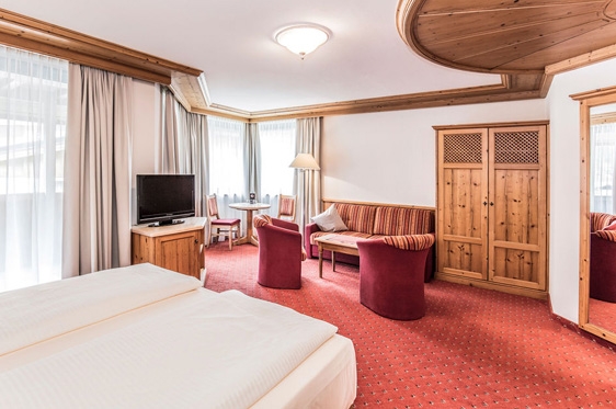 Juniorsuite balkon (2-4 pers.): type Landidyll, min. 40 m2 en voorzien van 2-persoonsbed, 2-persoonssofabed, zithoek, tv, WiFi, kluisje en minibar. Badkamer met bad/douche, föhn en badjas/slippers. Apart toilet. Balkon.