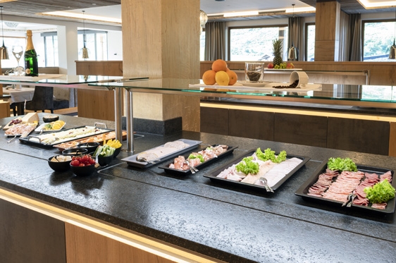 Goed om te wetenJe verblijft op basis van halfpension: in de ochtend een ontbijtbuffet. In de namiddag een Jause. Het diner bestaat uit een 4-gangen keuzemenu. Thema avonden. Kindermenu.