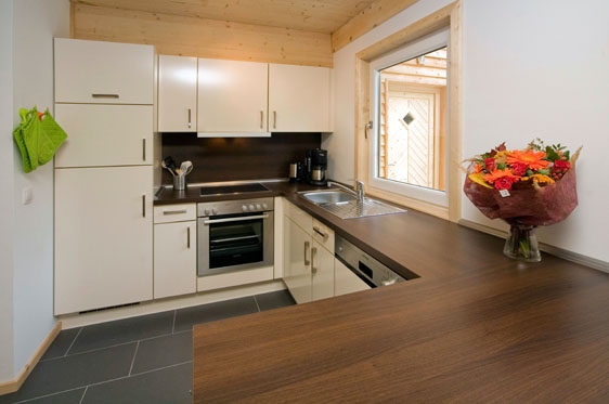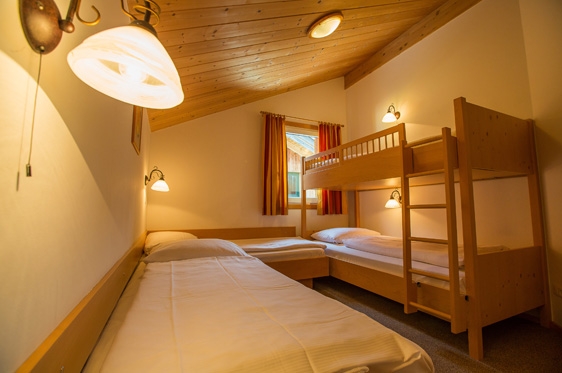 4-kamerbungalow (1-6 personen): type Gamsblume, min. 90 m2, vrijstaand en comfortabel. Woonkamer met zithoek, WiFi en tv. Keuken met grote eettafel, kookplaten, koelkast, vaatwasser, koffiezetapparaat, waterkoker en magnetron. 2 slaapkamers met 2-persoonsbed. 1 slaapkamer met 2x 1-persoonsbed of stapelbed. Badkamer met bad en toilet. 2e badkamer met douche. Apart toilet. Terras.