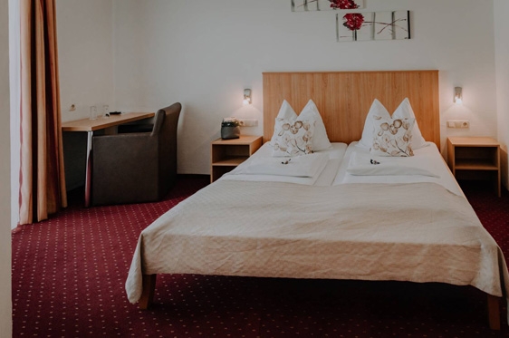 2-persoonskamer balkon (2-2 personen): min. 20 m2 en voorzien van 2-persoonsbed, tv, WiFi en kluisje. Badkamer met douche, föhn en toilet. Balkon.