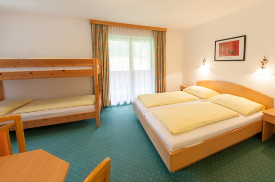 4-persoonskamer (2-4 personen): min. 24 m2 en voorzien van 2-persoonsbed, 2-persoonssofabed, tv, WiFi en kluisje. Badkamer met douche, föhn en toilet.
