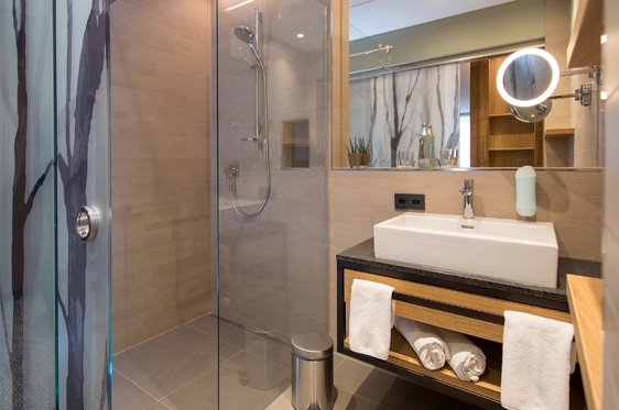4-persoonskamer balkon (2-4 personen): type Superior, min. 25 m2 en voorzien van 2-persoonsbed, 2-persoonssofabed, tv, WiFi en kluisje. Badkamer met bad/douche en toilet. Badjas mogelijk. Balkon.