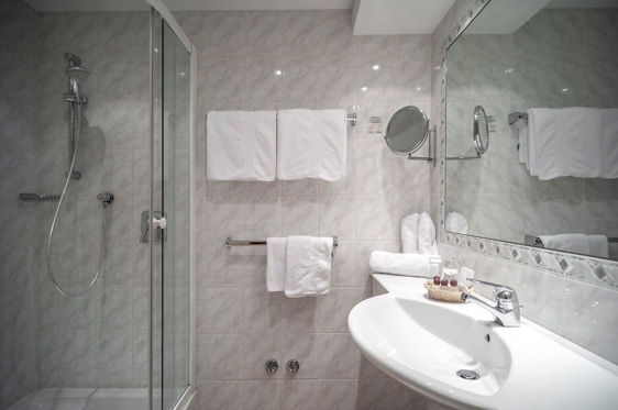 1-persoonskamer (1-1 persoon): type Koglblick, ca. 15 m2 en voorzien van 1-persoonsbed, tv, kluisje, minibar en WiFi. Badkamer met douche, föhn, badjas en toilet.