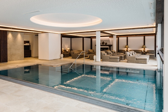 Wellness op 1.200 m2 met bio-sauna, kruidensauna, Finse sauna, aroma stoombad, infraroodcabine, wellnessdouches en rustruimte.