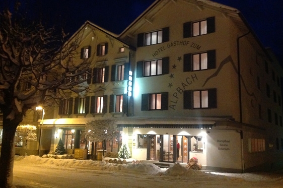 Hotel Alpbach ligt midden in Meiringen aan een rustige zijstraat. Gemoedelijk hotel met een goede keuken.